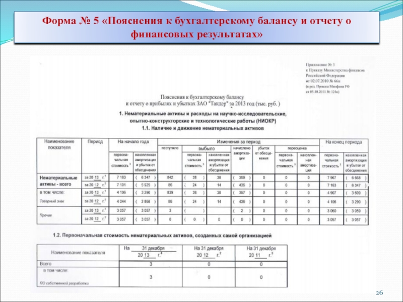 к бухгалтерскому баланса и отчету о финансовых результатах»