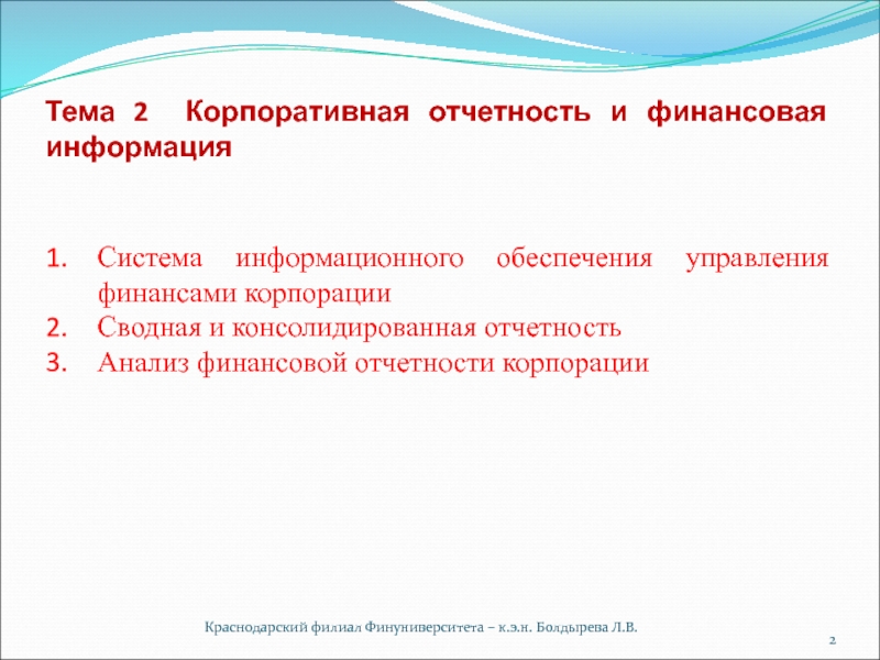 Слайд 2Краснодарский филиал Финуниверситета – к.э.н. Болдырева Л.В.