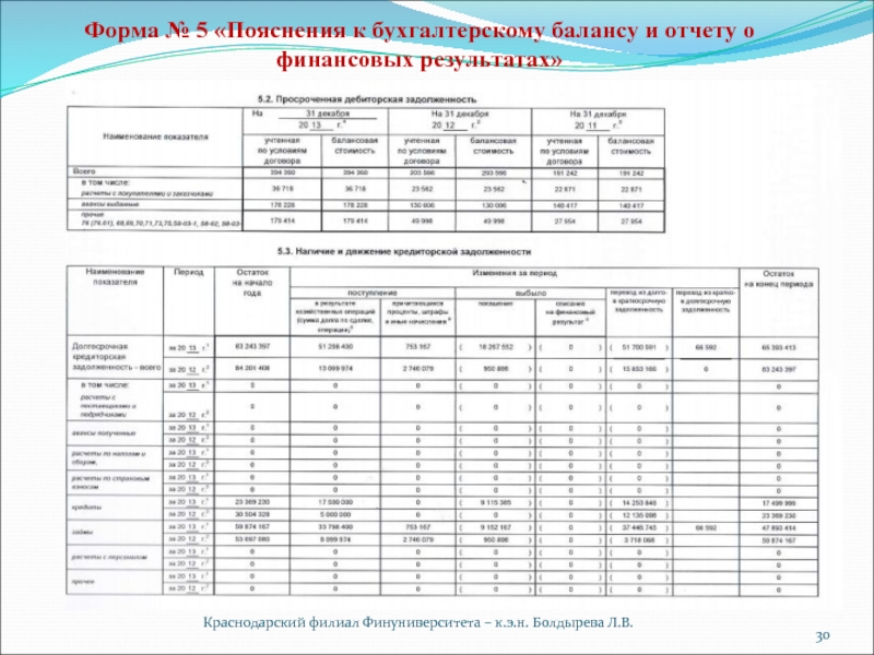 Слайд 30Краснодарский филиал Финуниверситета – к.э.н. Болдырева Л.В.