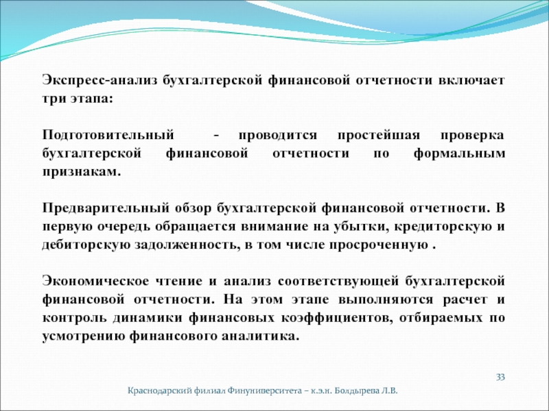 Слайд 33Краснодарский филиал Финуниверситета – к.э.н. Болдырева Л.В.