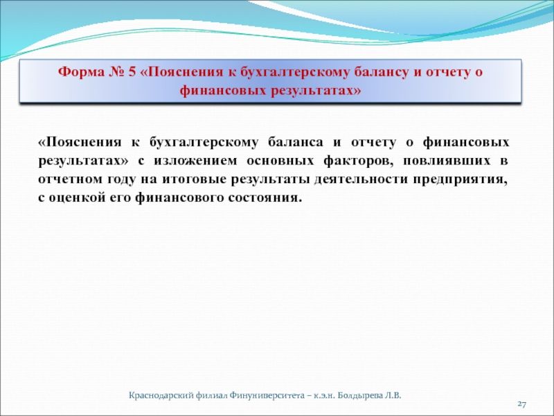 Слайд 27Краснодарский филиал Финуниверситета – к.э.н. Болдырева Л.В.