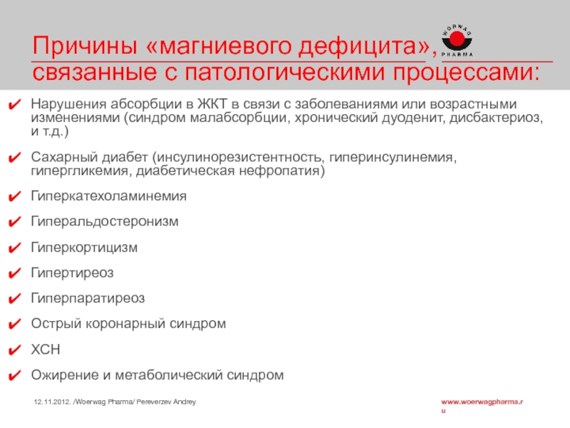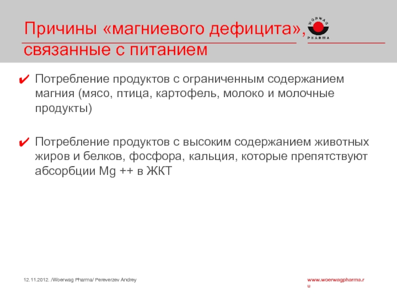Слайд 13Причины «магниевого дефицита», связанные с питанием