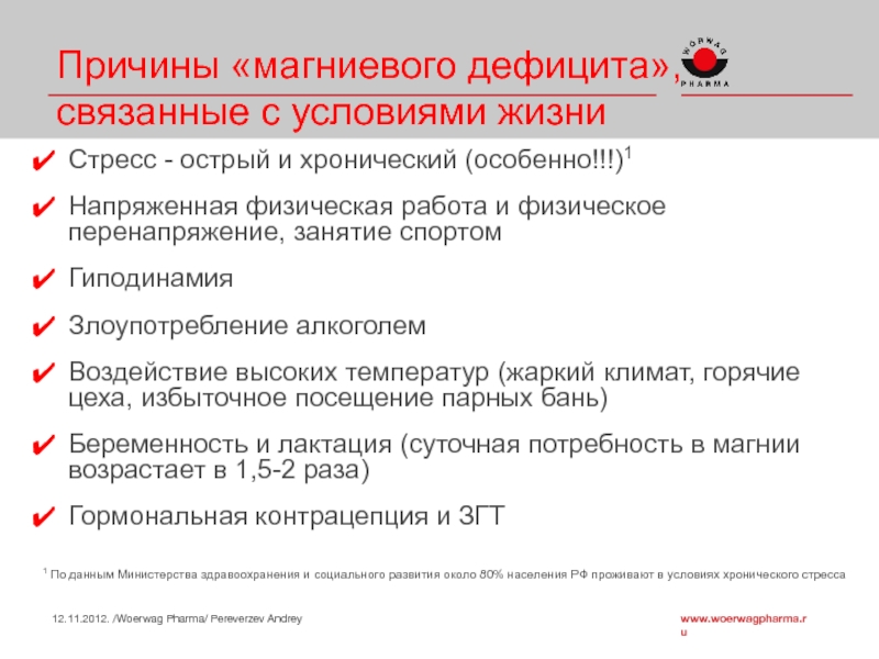 Слайд 12Причины «магниевого дефицита», связанные с условиями жизни