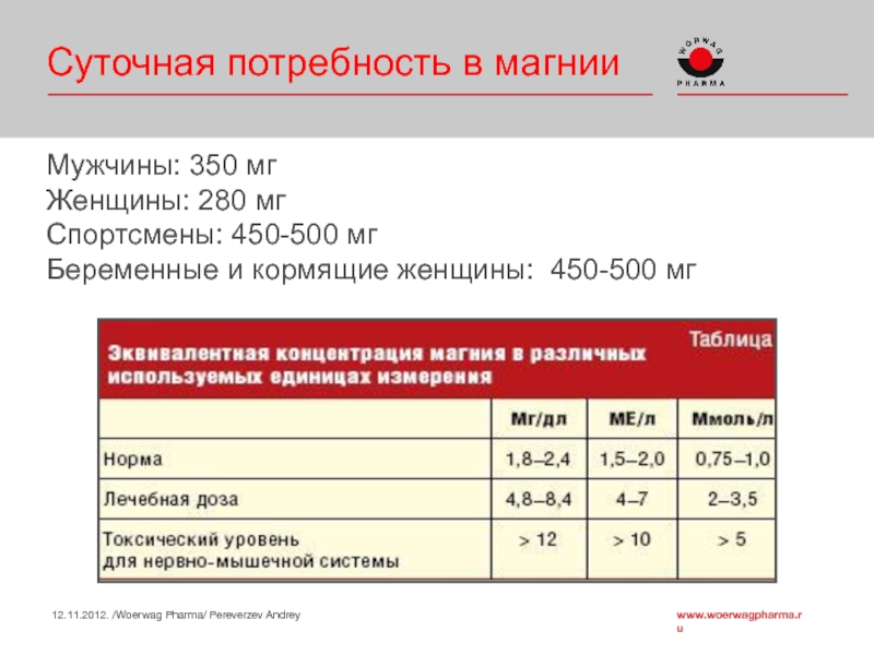 Беременность и лактация (суточная потребность в магнии возрастает в 1,5-2 раза)