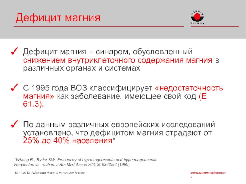 *Whang R., Ryder KW. Frequency of hypomagnesemia and hypermagnesemia
