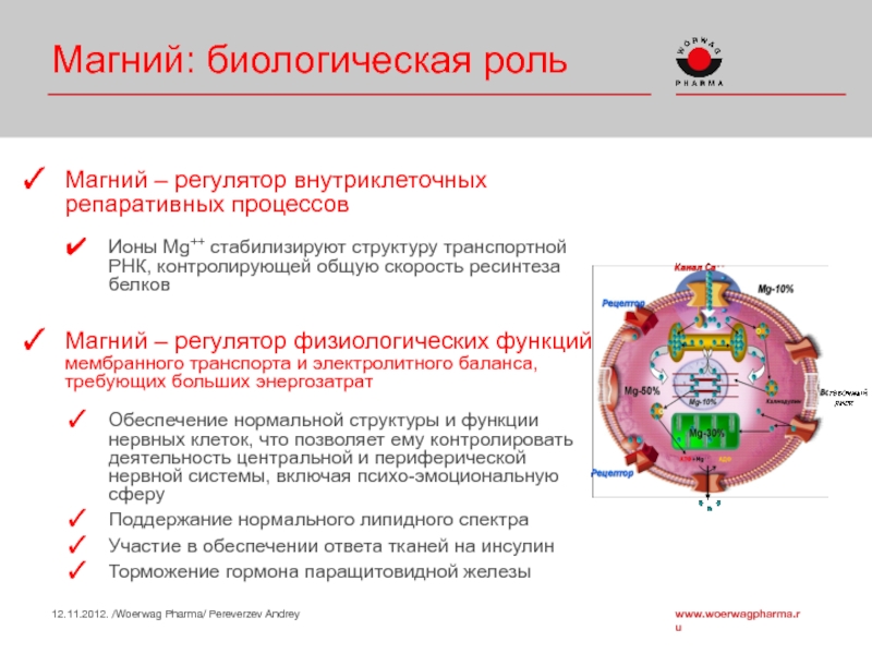 Магний по концентрации занимает четвертое место в организме среди других катионов (Натрий, Калий, Кальций), а в клетке – второе.