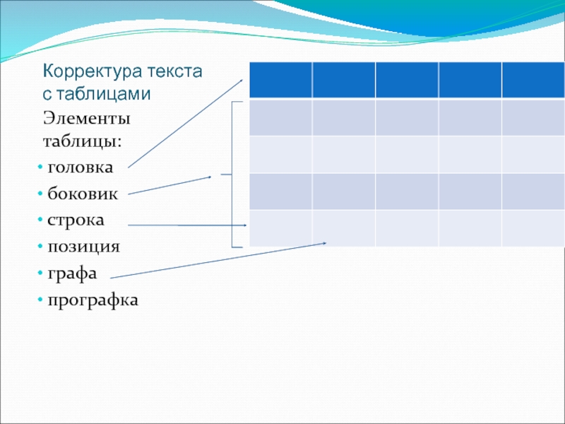 Слайд 2Корректура текста с таблицами