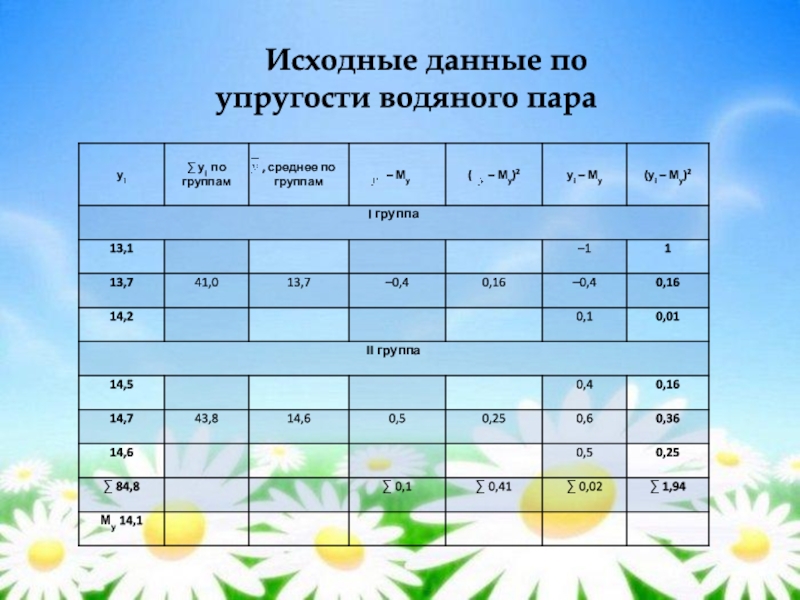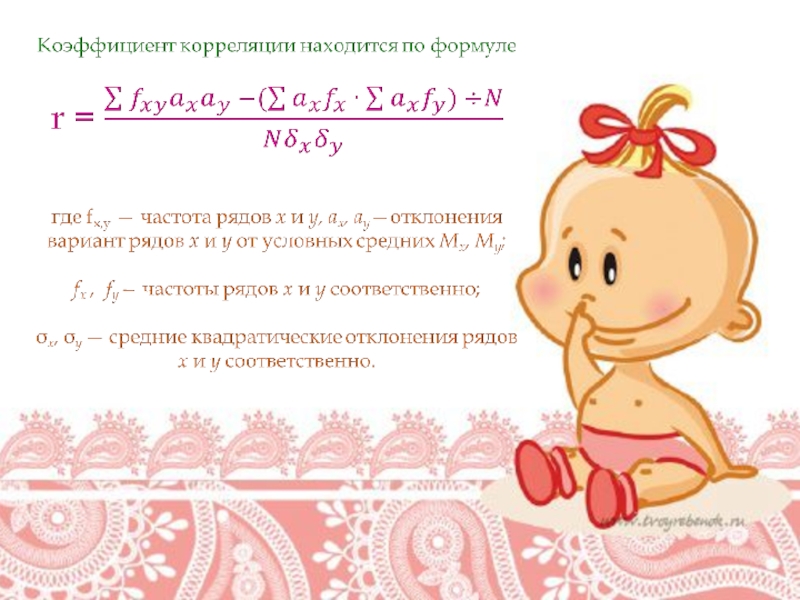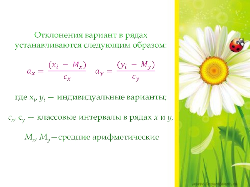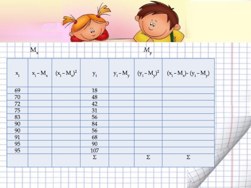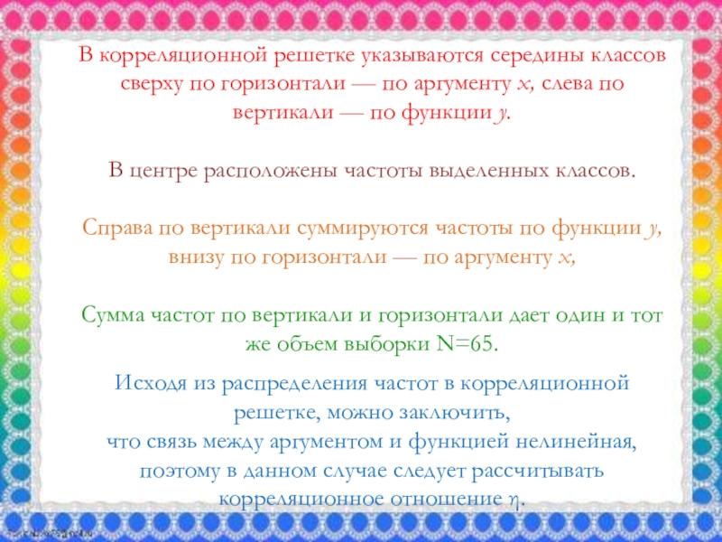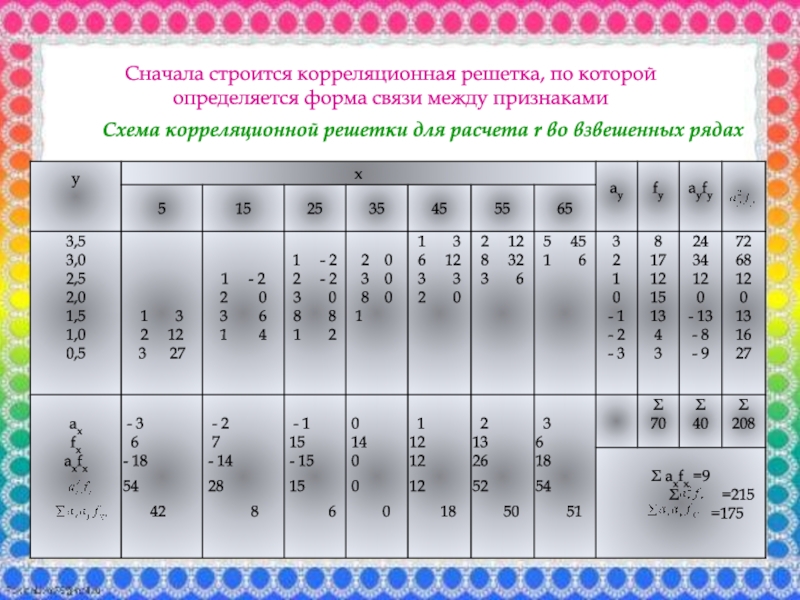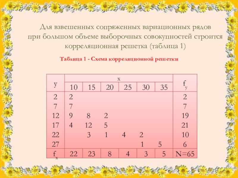 Слайд 14В корреляционной решетке указываются середины классов сверху по горизонтали —