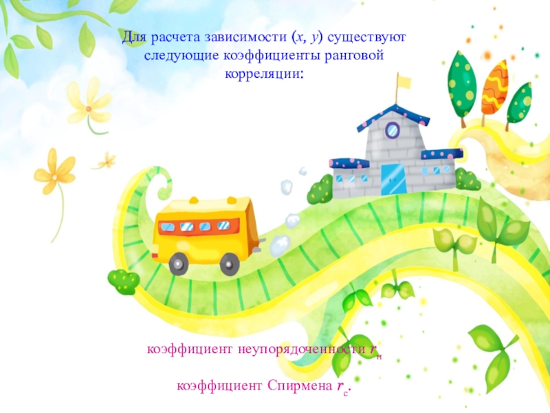 Слайд 53Для расчета зависимости (х, у) существуют следующие коэффициенты ранговой корреляции: