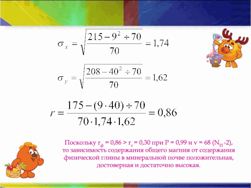Слайд 36Поскольку rф = 0,86 > rт = 0,30 при Р