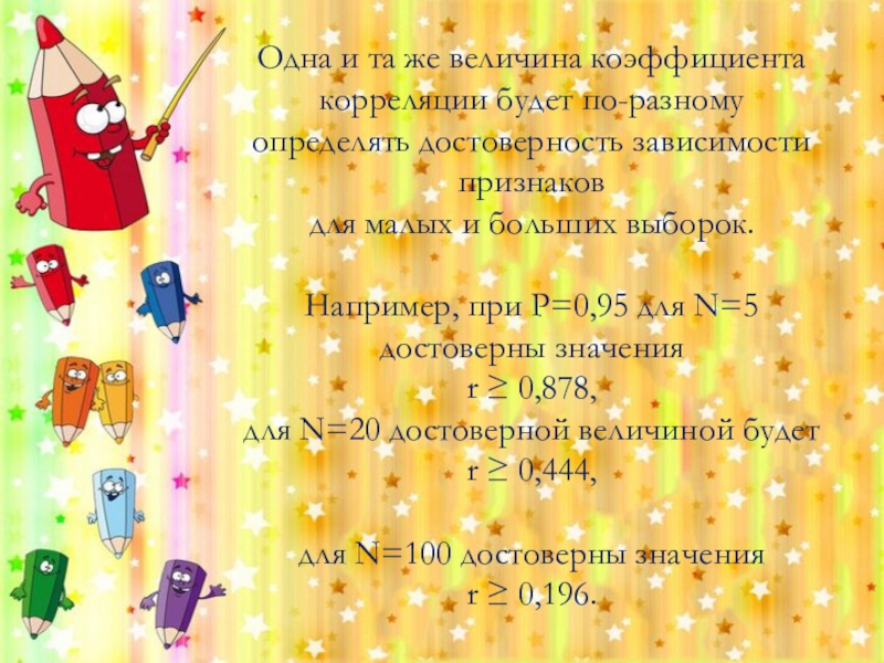 Слайд 20Одна и та же величина коэффициента корреляции будет по-разному определять