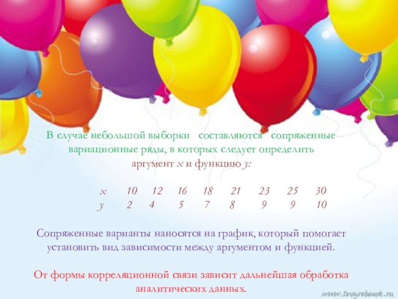 Слайд 9В случае небольшой выборки составляются сопряженные вариационные ряды,