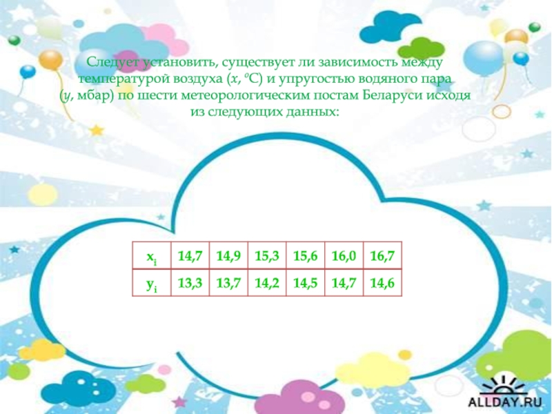 Слайд 43Следует установить, существует ли зависимость между температурой воздуха (х, оС)