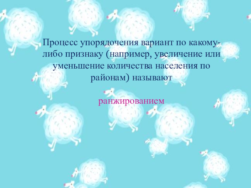 Слайд 47Процесс упорядочения вариант по какому-либо признаку (например, увеличение или уменьшение
