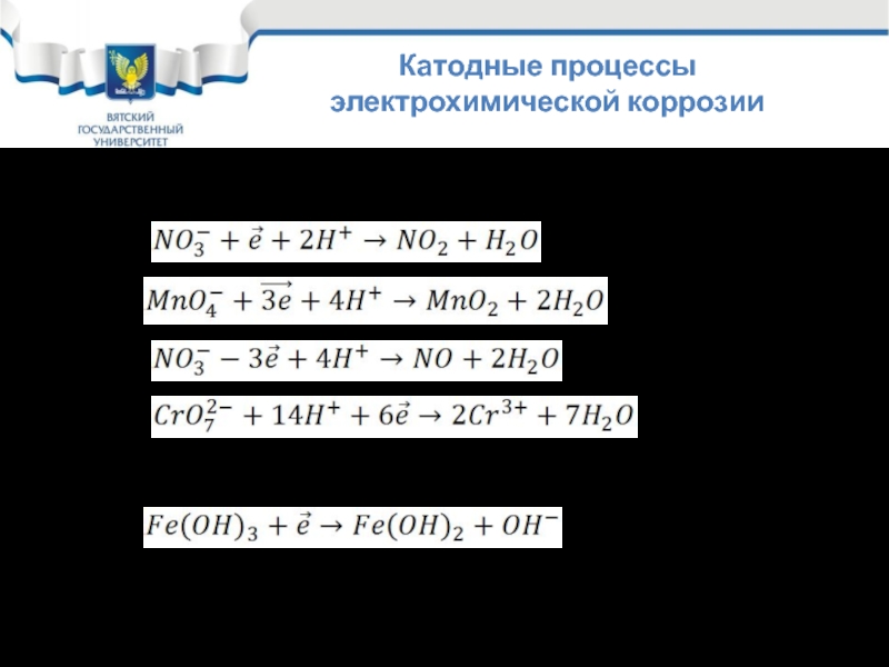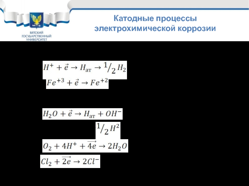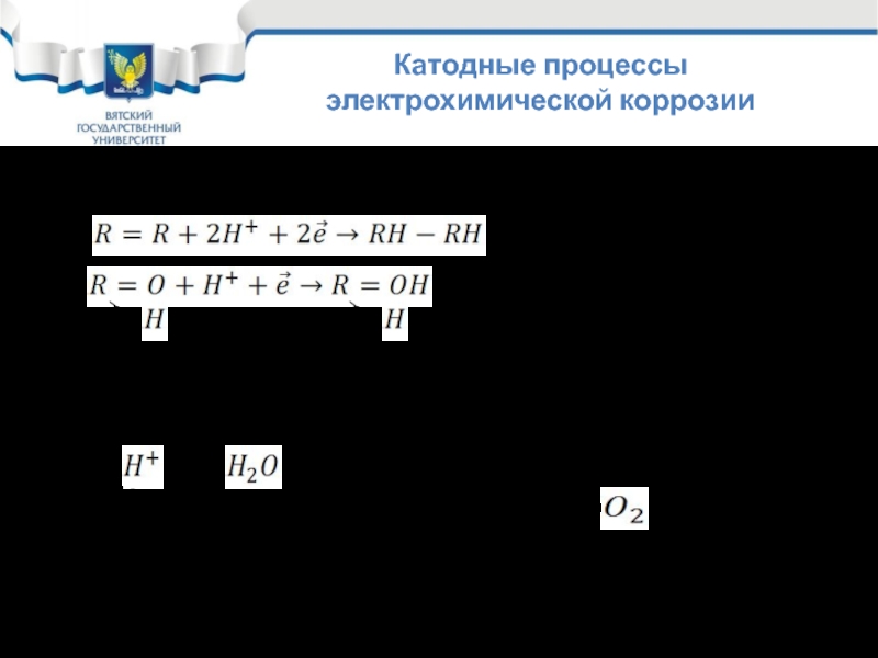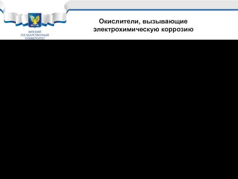 скоростью протекания и той и другой реакции. Рассмотрим более подробно особенности протекания катодной реакции коррозионного процесса.Электрохимическая коррозия может вызываться большим количеством окислителей, которые могут присутствовать в электролите (в коррозионной среде).