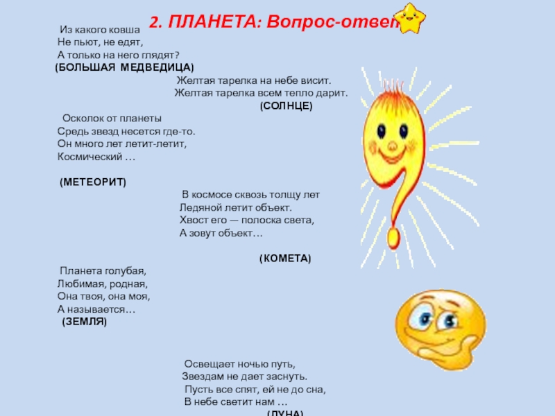 2. ПЛАНЕТА: Вопрос-ответ     Из какого ковша Не пьют, не едят,