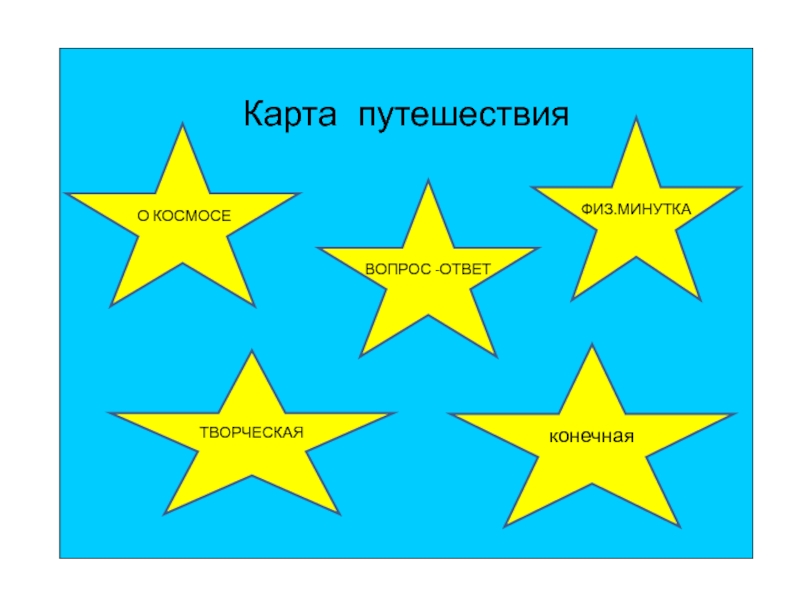 Карта путешествия О КОСМОСЕВОПРОС -ОТВЕТФИЗ.МИНУТКАТВОРЧЕСКАЯконечная