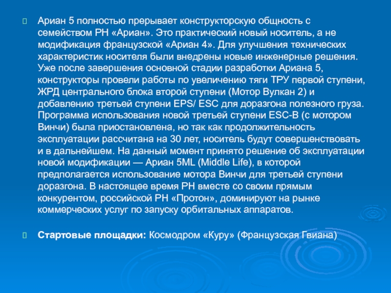 Слайд 13Ариан 5 полностью прерывает конструкторскую общность с семейством РН «Ариан».