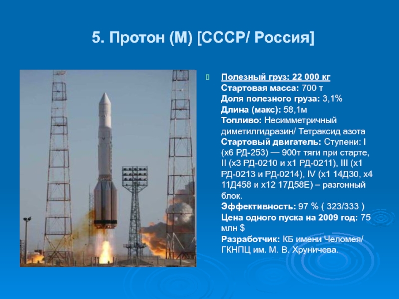 Разработчик: КБ имени Челомея/ ГКНПЦ им. М. В. Хруничева.