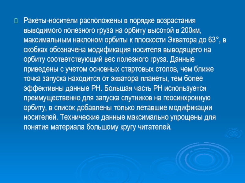 Слайд 4Ракеты-носители расположены в порядке возрастания выводимого полезного груза на орбиту