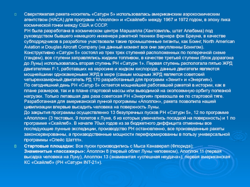 Слайд 25Сверхтяжелая ракета-носитель «Сатурн 5» использовалась американским аэрокосмическим агентством (НАСА) для