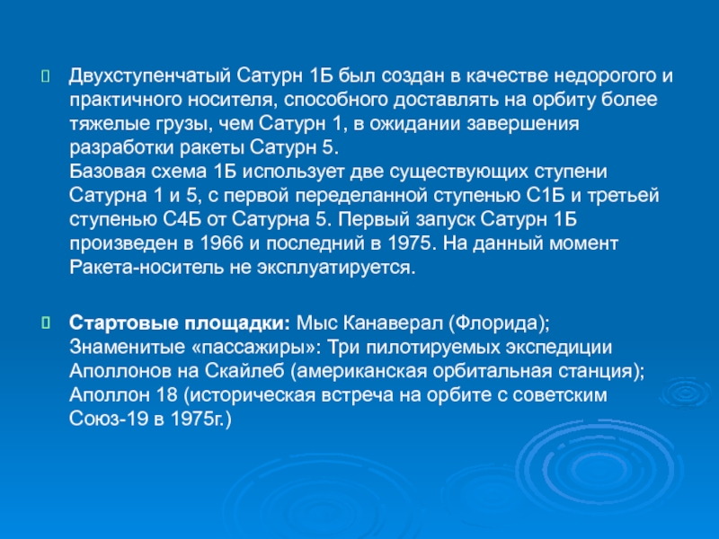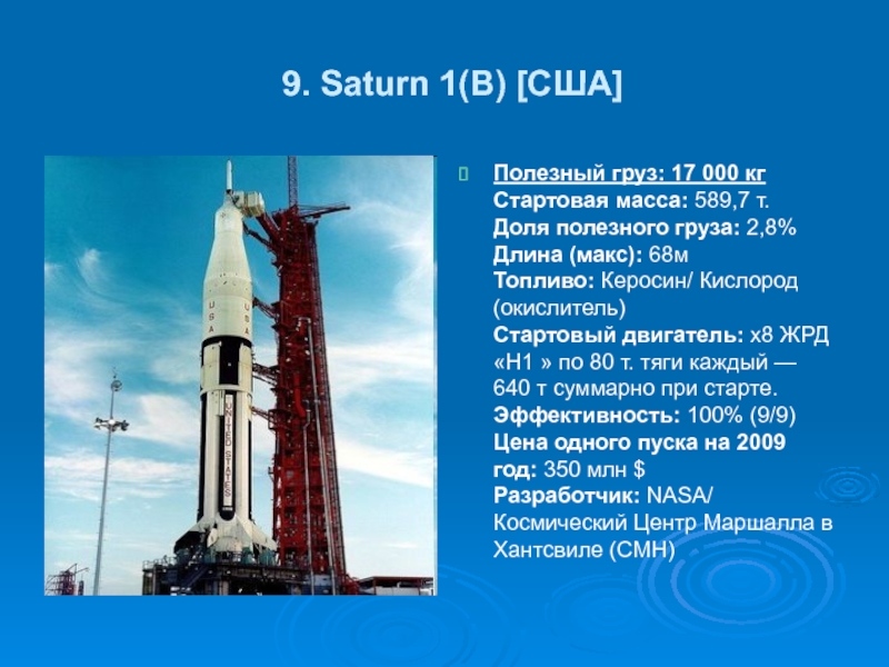 Слайд 9Двухступенчатый Сатурн 1Б был создан в качестве недорогого и практичного