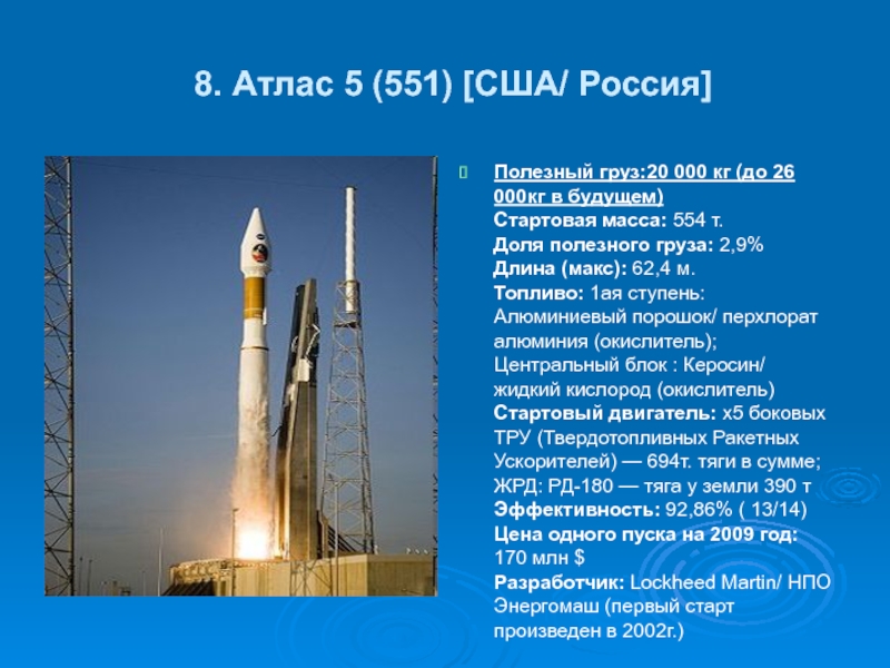 Слайд 108. Атлас 5 (551) [США/ Россия]