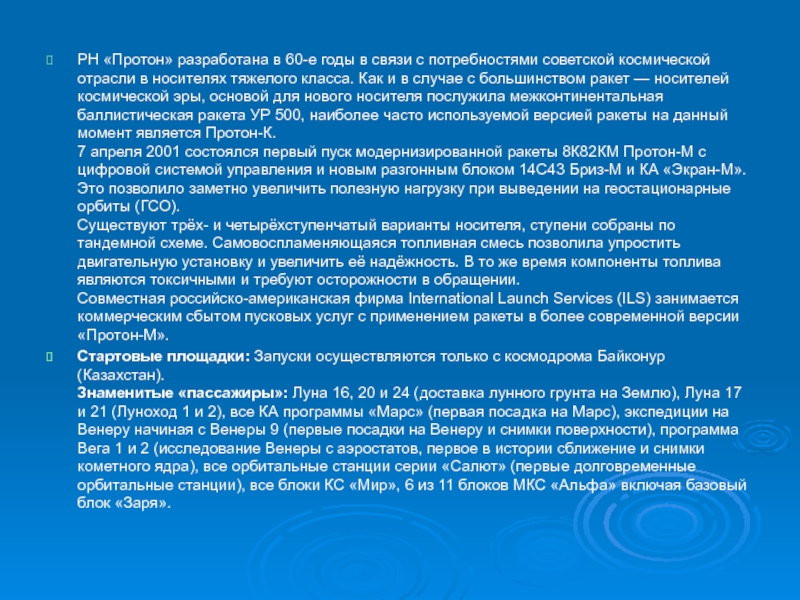 Слайд 17РН «Протон» разработана в 60-е годы в связи с потребностями