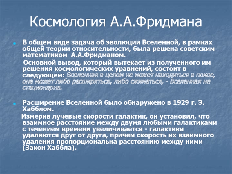 Согласно космологии Фридмана, во всех ее трех моделях,