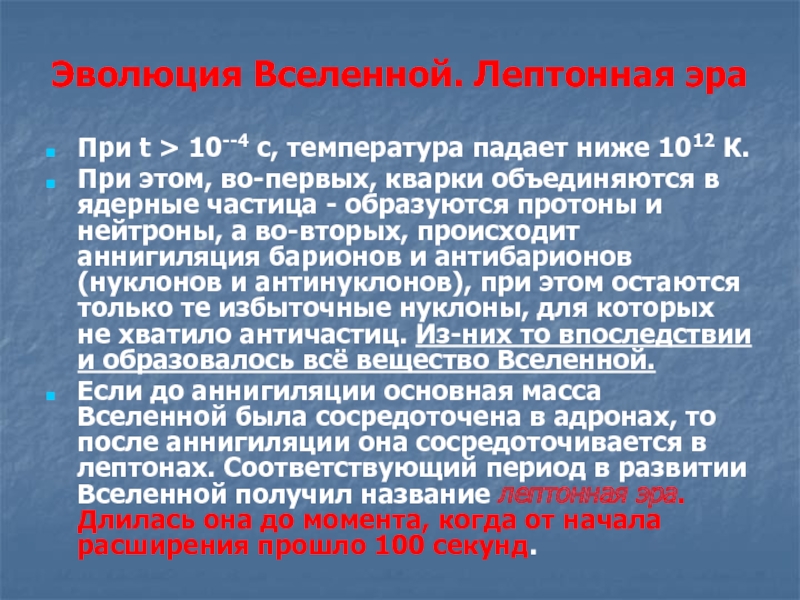 наличие во Вселенной небарионной материи неизвестной природы;