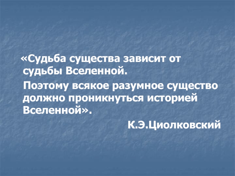 космического мышления К.Э.Циолковским и В.И.Вернадским. Начиная со второй половины ХХ века, эти идеи все более явно начинают проникать в науку. Этому способствовали три обстоятельства: