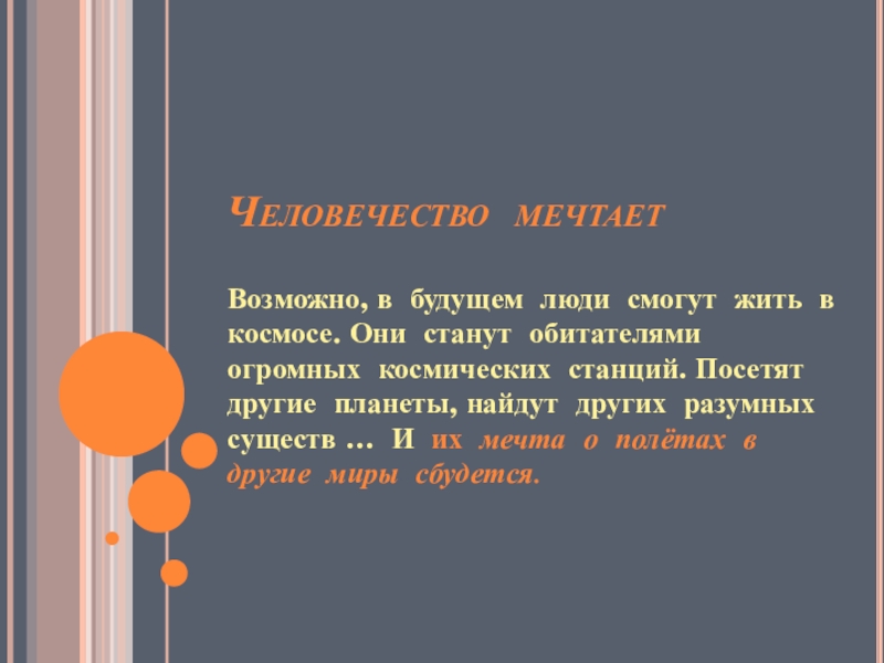 космосе. Они станут обитателями огромных космических станций. Посетят другие планеты,