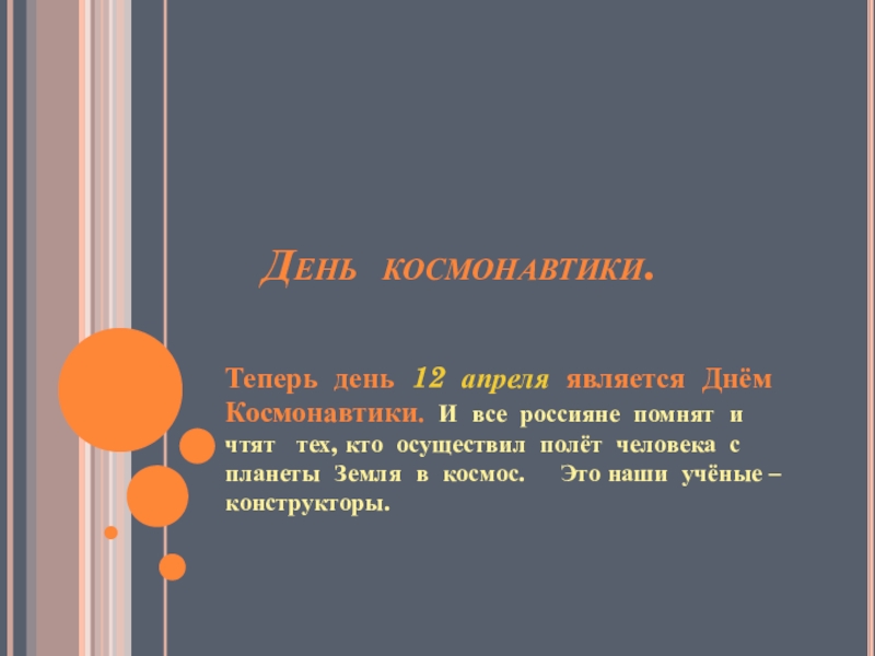 человека с планеты Земля в космос. Это наши учёные – конструкторы.