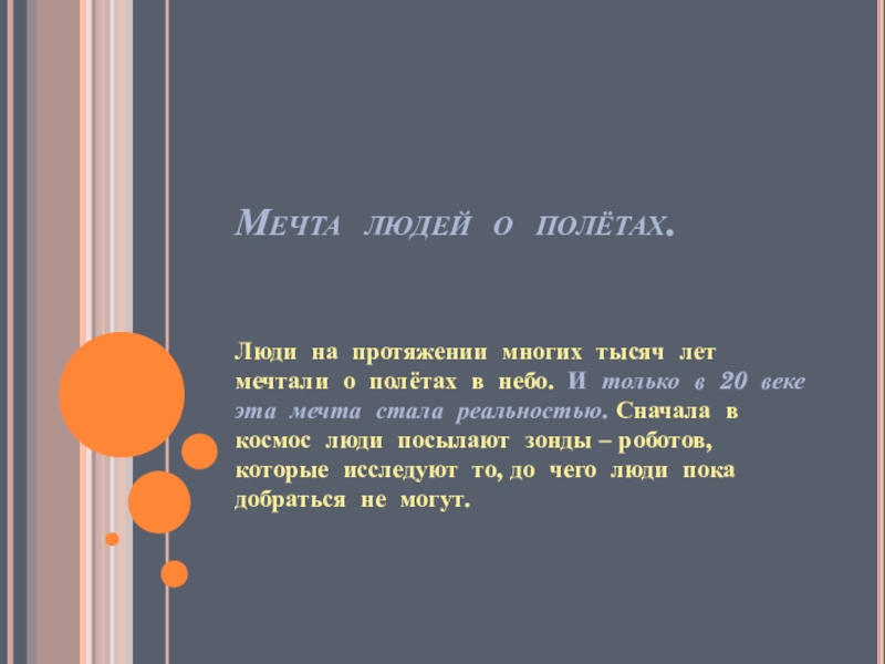 мечта стала реальностью. Сначала в космос люди посылают зонды – роботов, которые исследуют то, до чего люди пока добраться не могут.