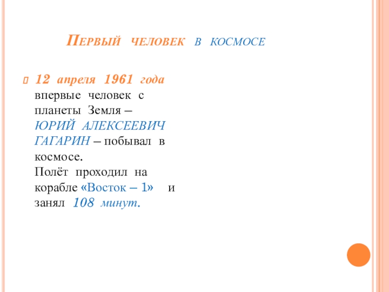 планеты Земля – ЮРИЙ АЛЕКСЕЕВИЧ ГАГАРИН – побывал в космосе.