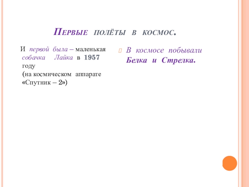 3. Как звали двух собак, которые первыми побывали в космосе?