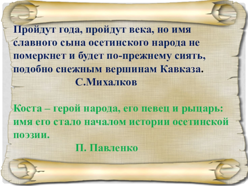«Коста Хетагуров — гордость Осетии и всего советского народа».