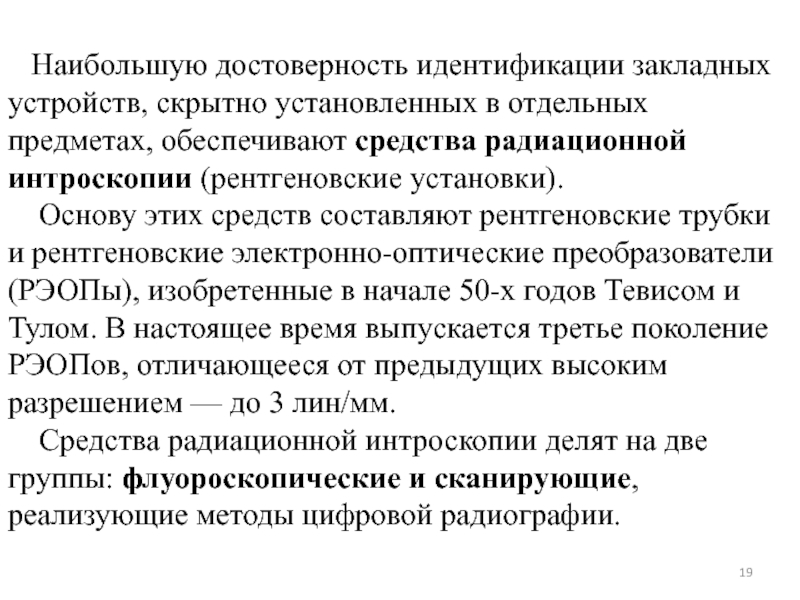 Слайд 19Наибольшую достоверность идентификации закладных устройств, скрытно установленных в отдельных предметах,