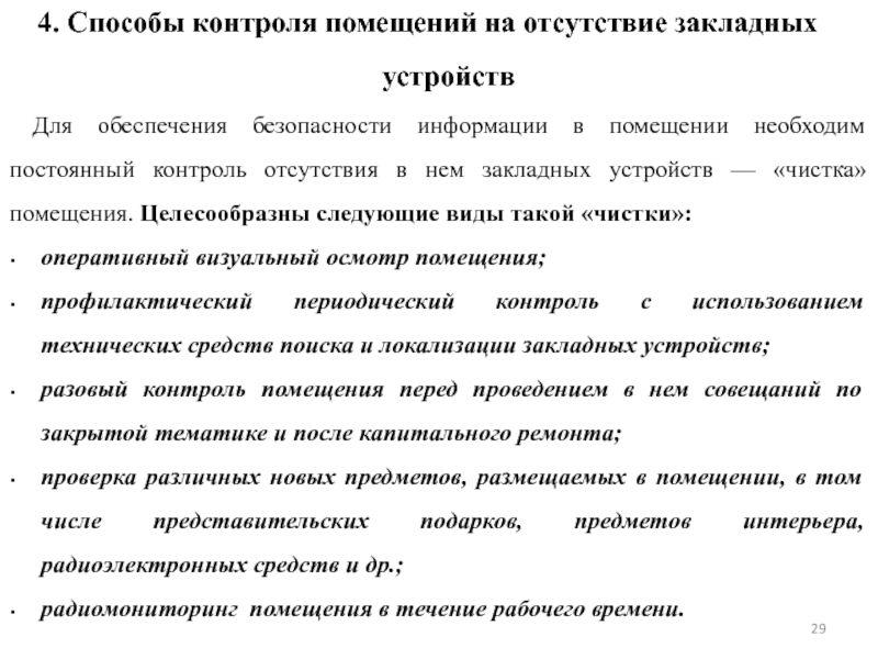 Слайд 294. Способы контроля помещений на отсутствие закладных устройств