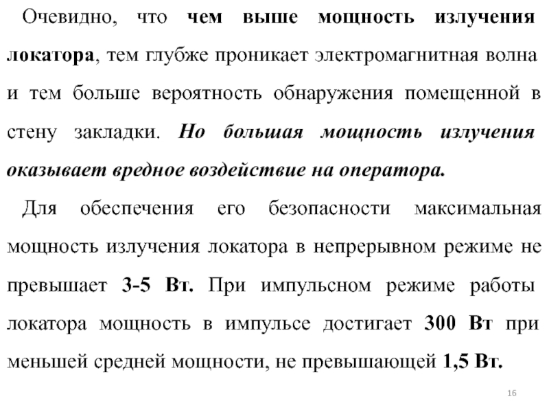 Слайд 16Очевидно, что чем выше мощность излучения локатора, тем глубже проникает