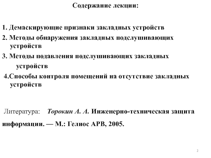 Слайд 62. Методы обнаружения закладных подслушивающих устройств
