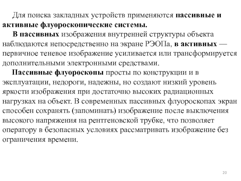Слайд 20 Для поиска закладных устройств применяются пассивные и
