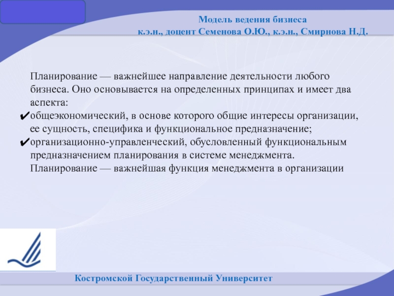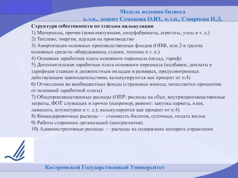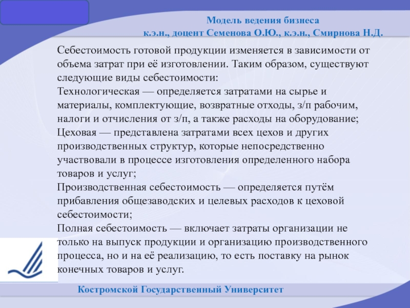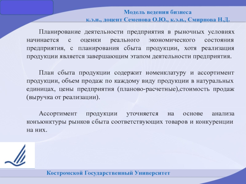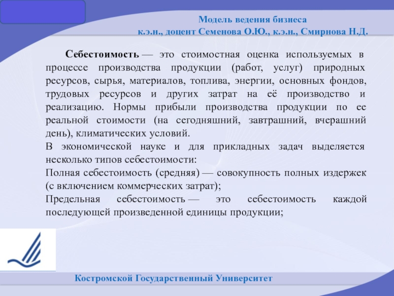 к.э.н., доцент Семенова О.Ю., к.э.н., Смирнова Н.Д.