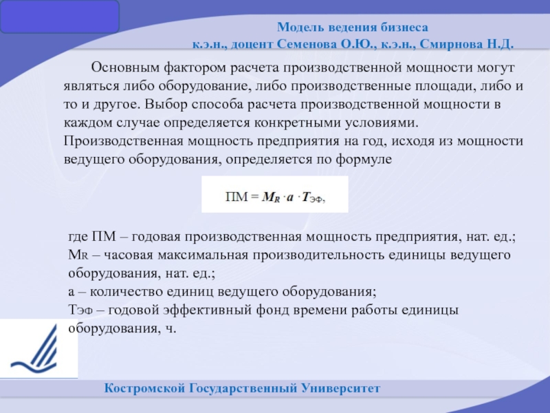 где ПМ – годовая производственная мощность предприятия, нат. ед.; МR – часовая максимальная производительность единицы ведущего оборудования, нат. ед.;