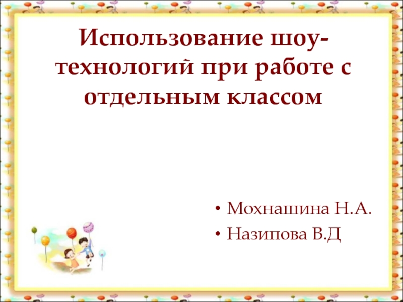 Использование шоу-технологий при работе с отдельным классом Мохнашина Н.А.Назипова В.Д