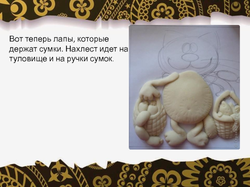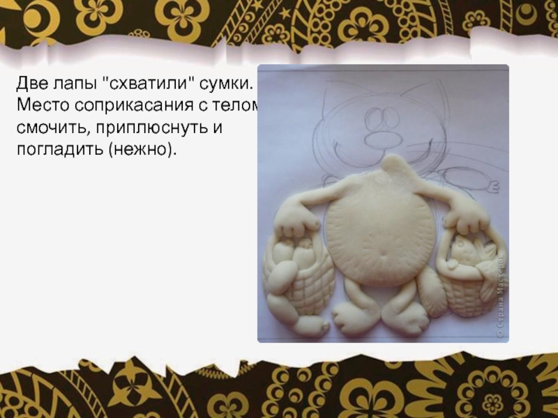 Слайд 9Вот теперь лапы, которые держат сумки. Нахлест идет на туловище