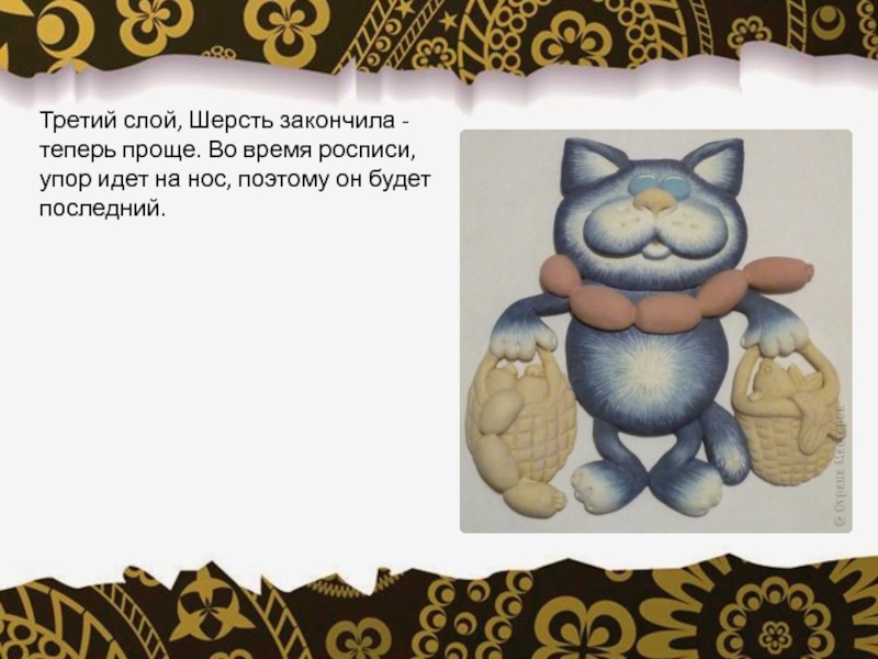 Слайд 17Третий слой, Шерсть закончила - теперь проще. Во время росписи,