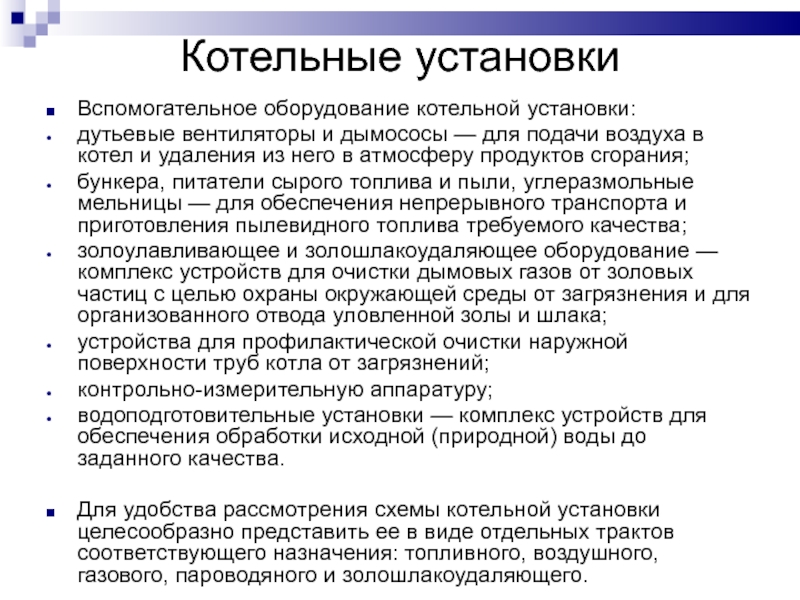 Вспомогательное оборудование котельной установки: