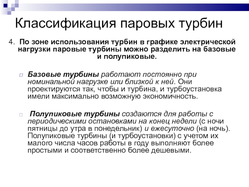 паровые турбины можно разделить на базовые и полупиковые.