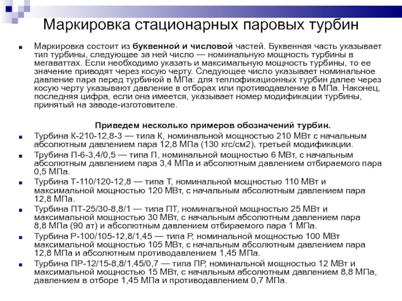 Слайд 24Маркировка стационарных паровых турбин